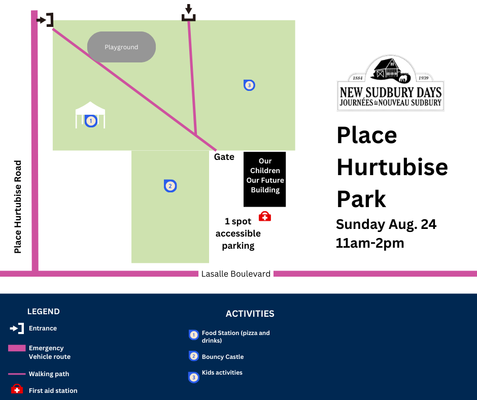 • Visitors are encouraged to bike, walk, or take transit to the event. Transit rides are free to all of our events, thanks to Sudbury Transit. Just mention to the bus driver that you’re going to a New Sudbury Days event.